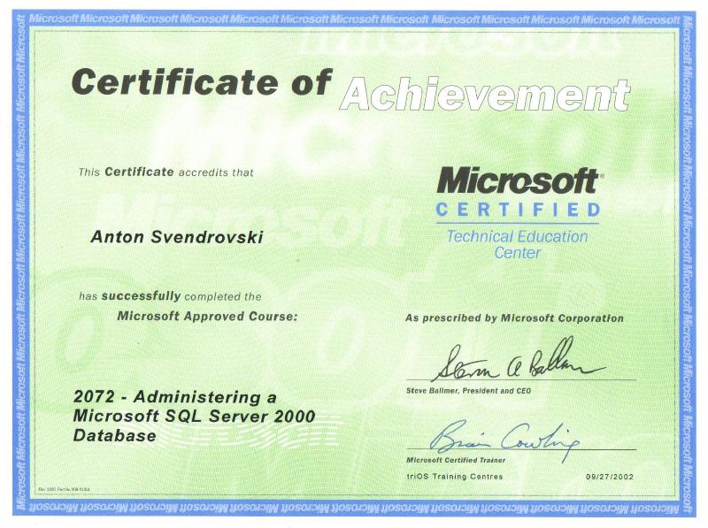 Microsoft Course #2072: "Administering a Microsoft SQL Server 2000 Database" |