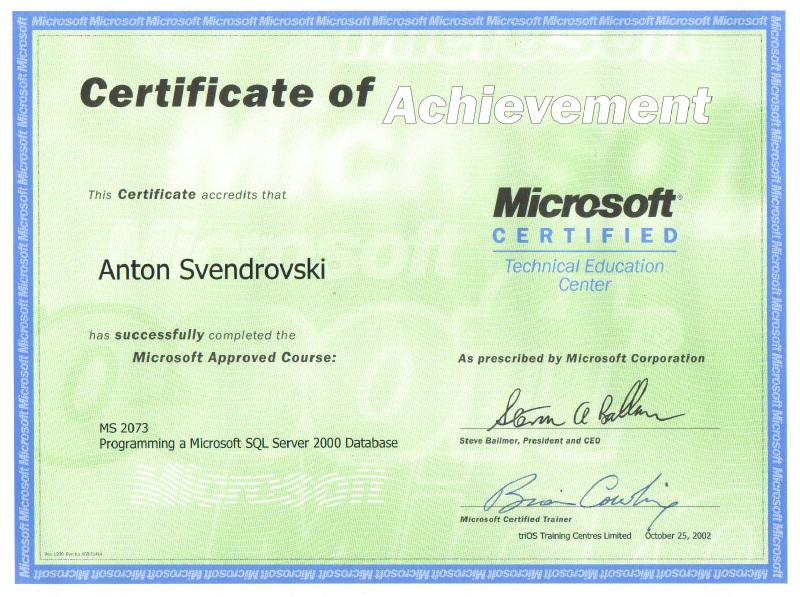 Microsoft Course #2073: "Programming a Microsoft SQL Server 2000 Database"